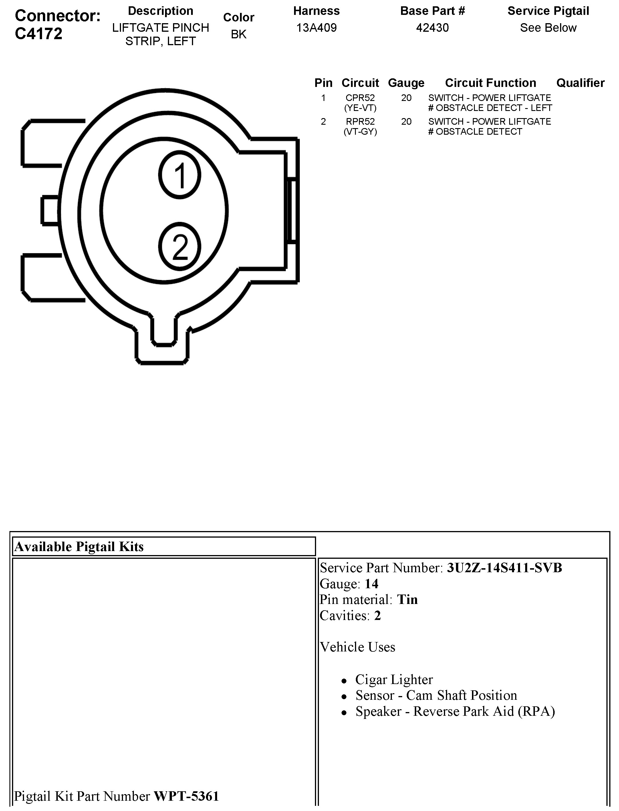 C4172 Liftgate Pinch Strip, Left