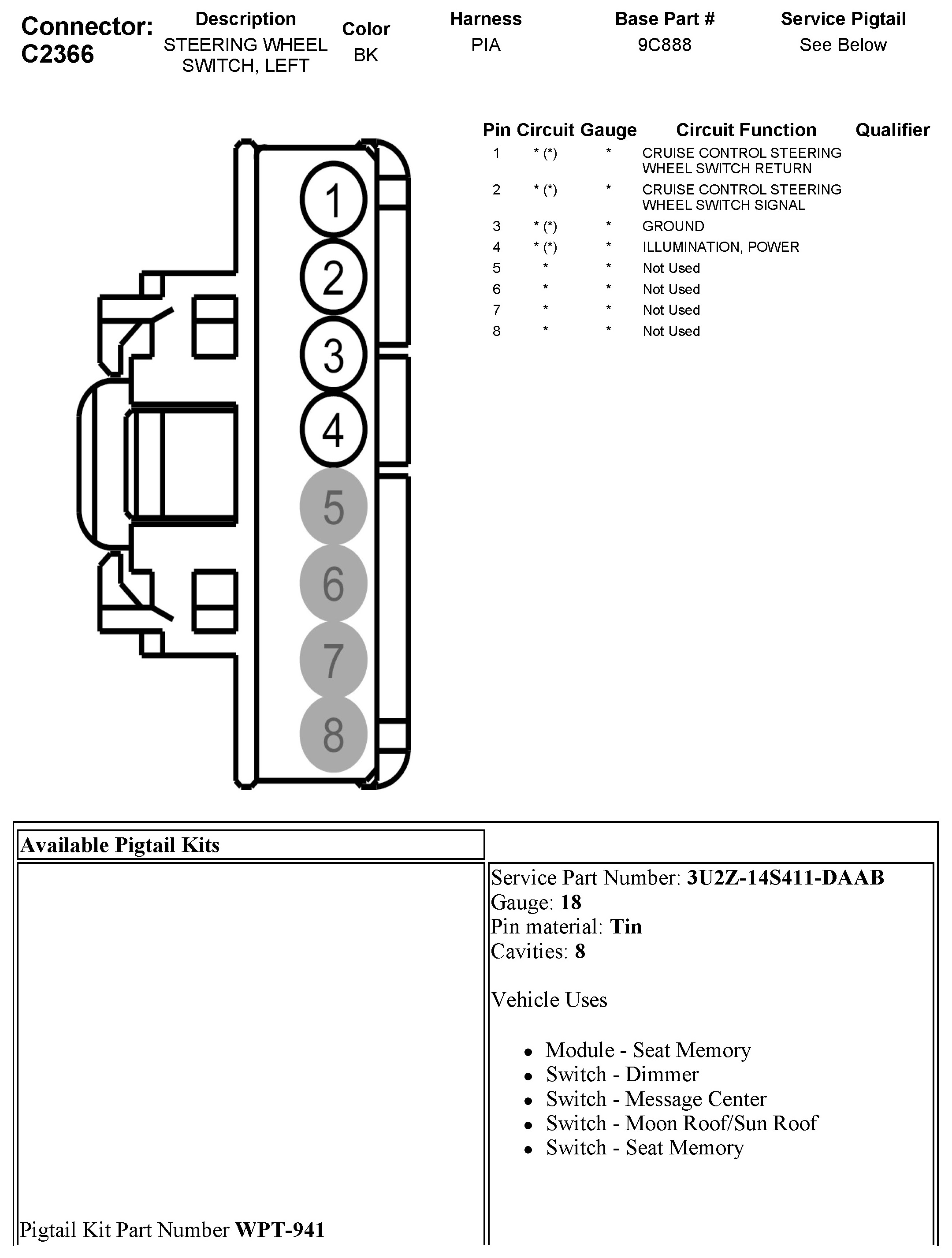C2366 Steering Wheel Switch, Left