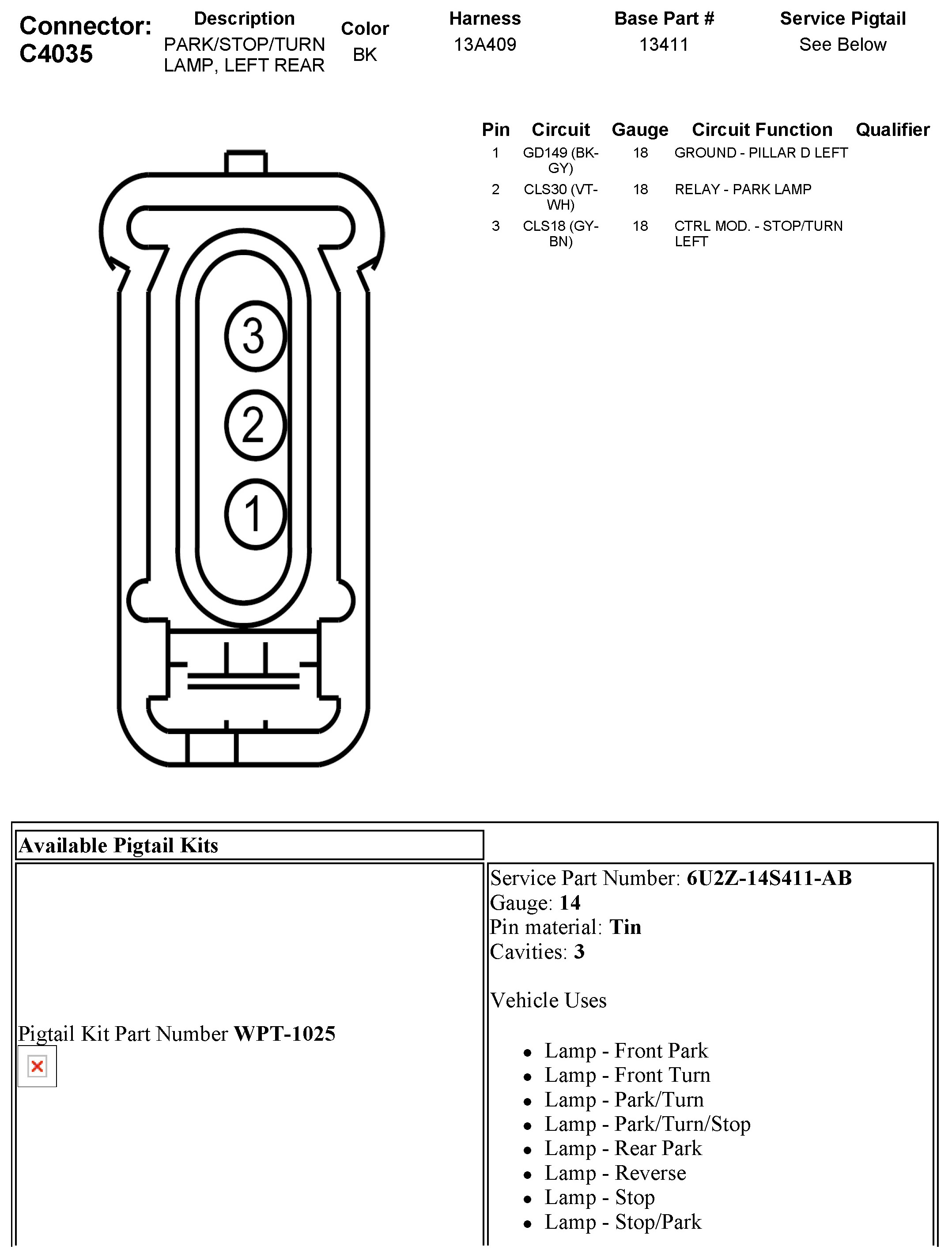 C4035 Park/Stop/Turn Lamp, Left Rear