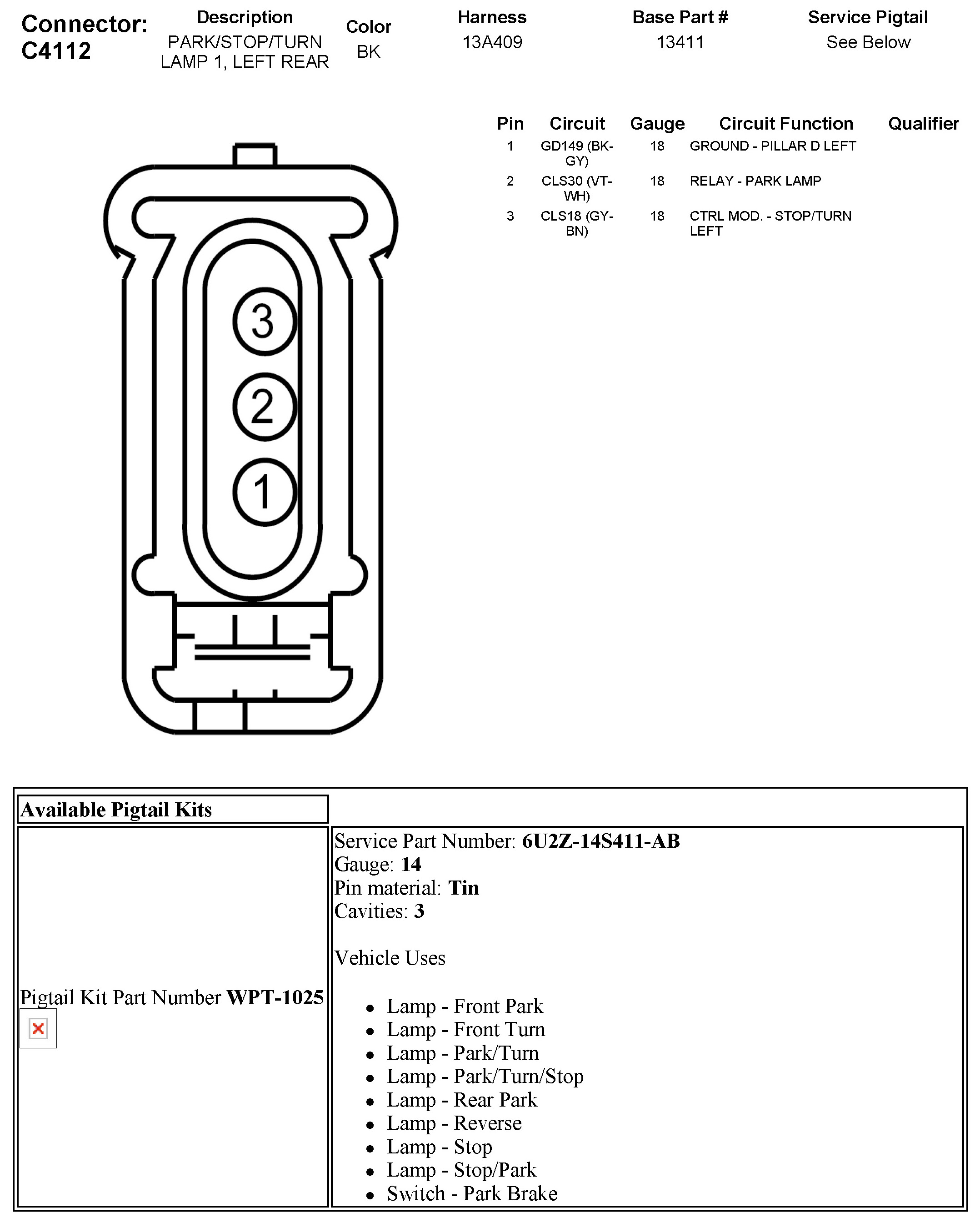 C4112 Park/Stop/Turn Lamp 1, Left Rear