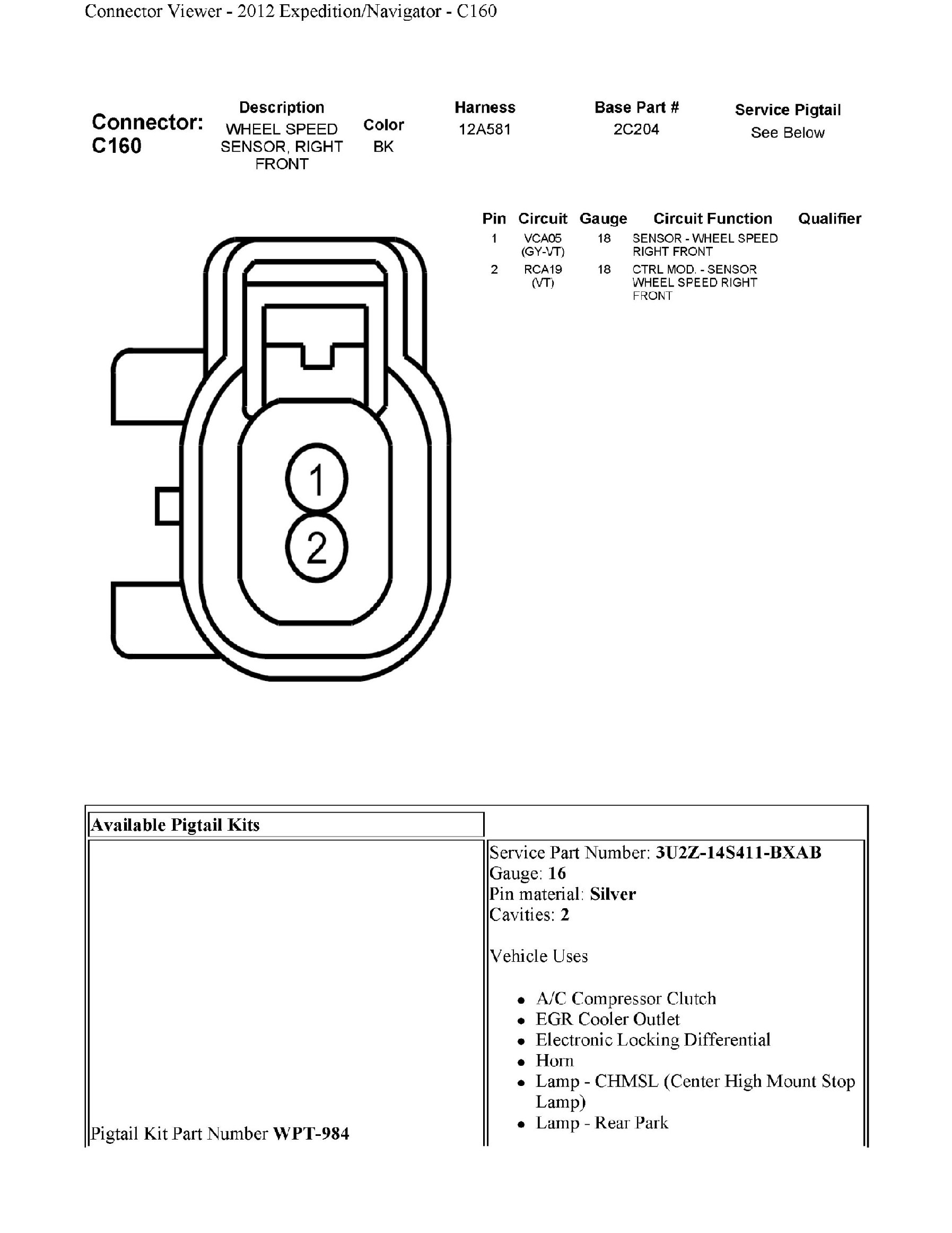 C160 Wheel Speed Sensor, Right Front