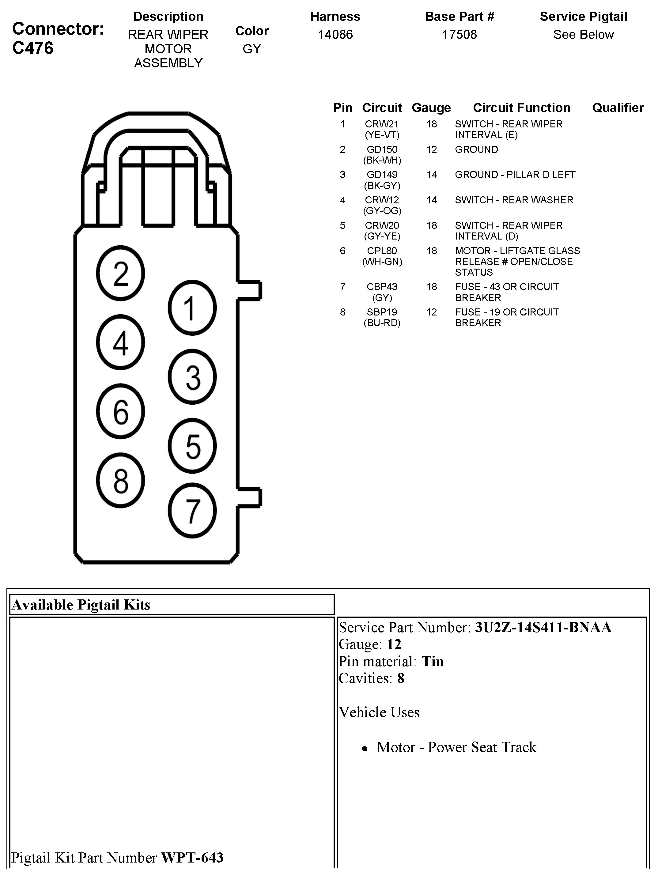 C476 Rear Wiper Motor Assembly