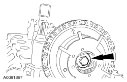 33. NOTICE: Damage to the camshaft phaser and sprocket assembly will occur if mishandled or used as a lifting or leveraging device.