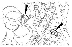 24. Connect the RH VCT (Variable Camshaft Timing) solenoid and the RH radio ignition interference capacitor electrical connectors.