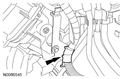 Position the fuel and Evaporative Emission (EVAP) tube support bracket and install the upper 2 transmission-to-engine bolts.