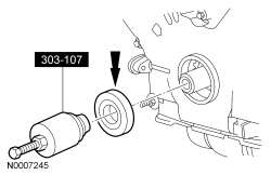 9. Using the Crankshaft Vibration Damper Installer, Front Cover Oil Seal Installer and the Crankshaft Front Oil Seal Installer, install a new crankshaft front seal into the engine front cover.