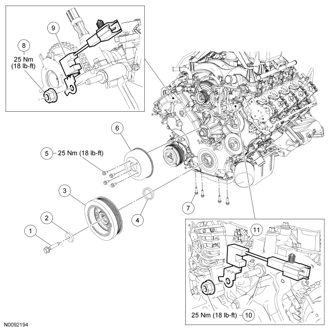- Tighten to 25 Nm (18 lb-ft).