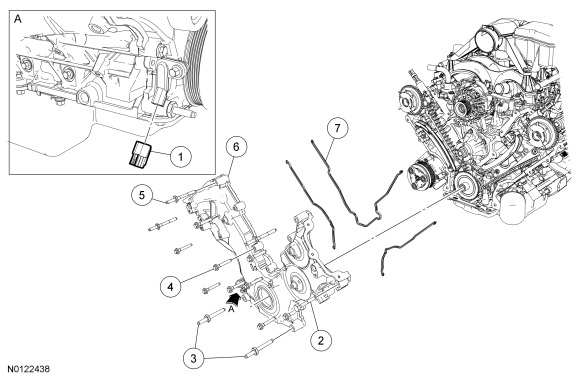 NOTE: If the engine front cover is not secured within 4 minutes, the sealant must be removed and the sealing area cleaned. To clean the sealing area, use silicone gasket remover and metal surface prep. Allow to dry until there is no sign of wetness, or 4 minutes, whichever is longer. Follow the directions on the packaging. Failure to follow this procedure can cause future oil leakage.