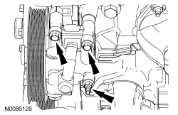 13. Install the accessory drive belt tensioner and the 3 bolts.