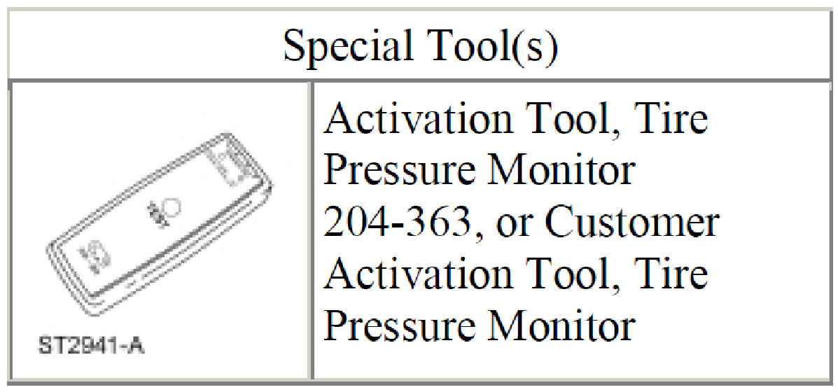 NOTE: The tire pressure sensors will go into a "sleep mode" when a vehicle is stationary to conserve battery power. The sensors do not transmit information while in sleep mode. It will be necessary to wake them up so they will transmit the latest tire pressure information.