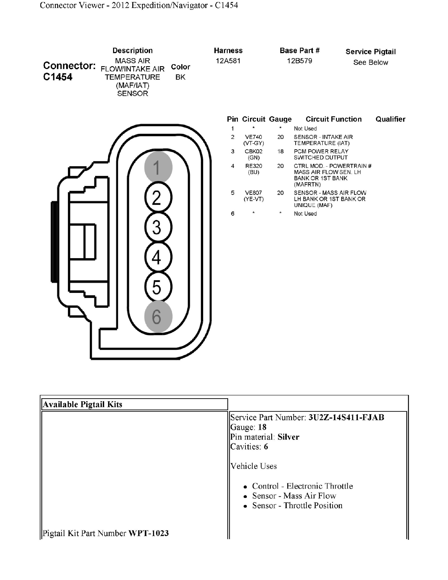 C1454 Mass Air Flow/Intake Air Temperature (MAF/IAT) Sensor