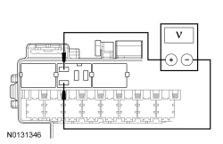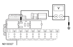 - Measure the voltage between ignition switch C250-9, circuit SBP27 (BU/RD), harness side and ground.