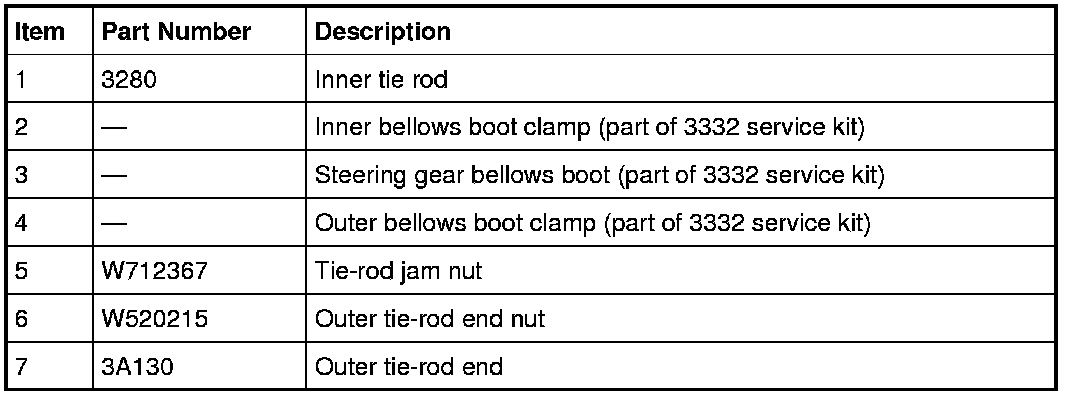 NOTICE: When servicing inner tie rods, a new bellows boot and clamps must be installed. The boots and clamps are designed to provide an airtight seal and protect the internal components of the steering gear. If the seal is not airtight, the vacuum generated during turning will draw water and contamination into the gear, causing failure of the steering gear components. Zip ties must not be used as they do not provide an airtight seal.
