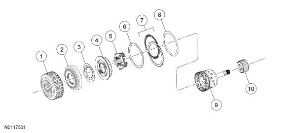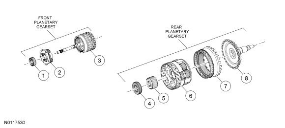 - Front planetary ring gear (part of the input shaft assembly)
