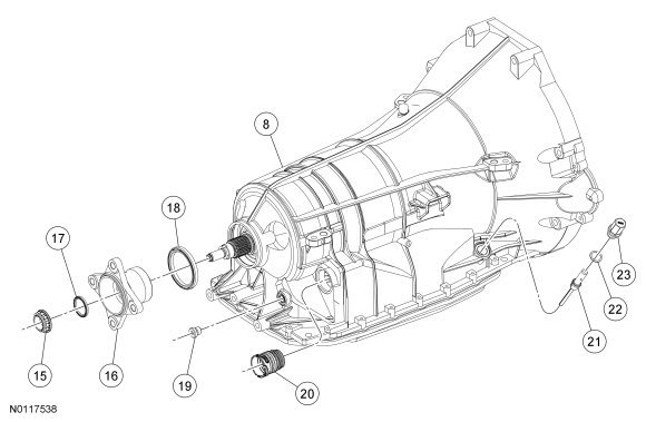 The transmission case plug provides access to the park pawl shaft. The plug has a seal that is serviced as an assembly with the plug.