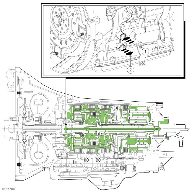 - The detent assembly (connected to the manual control shaft) rotates and pushes the park pawl actuator rod into the park pawl. The actuator rod is spring loaded.