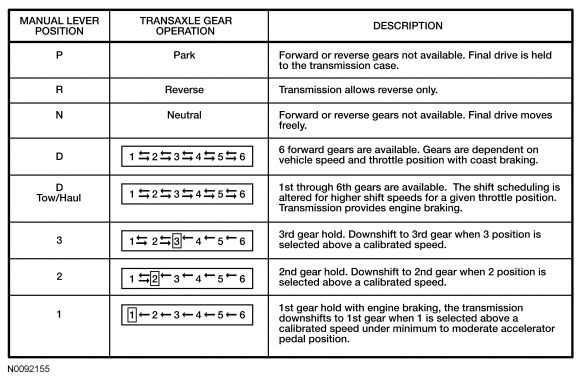 The transmission has 7 range positions: P, R, N, D, 3, 2 and 1.
