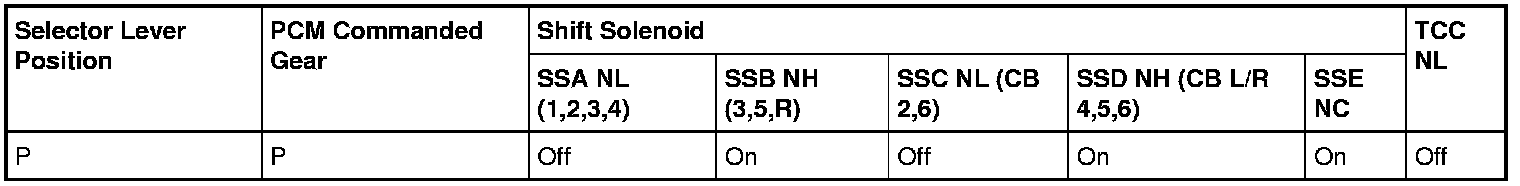 Park Position Solenoid Operation Chart