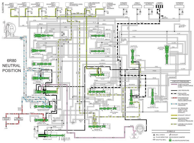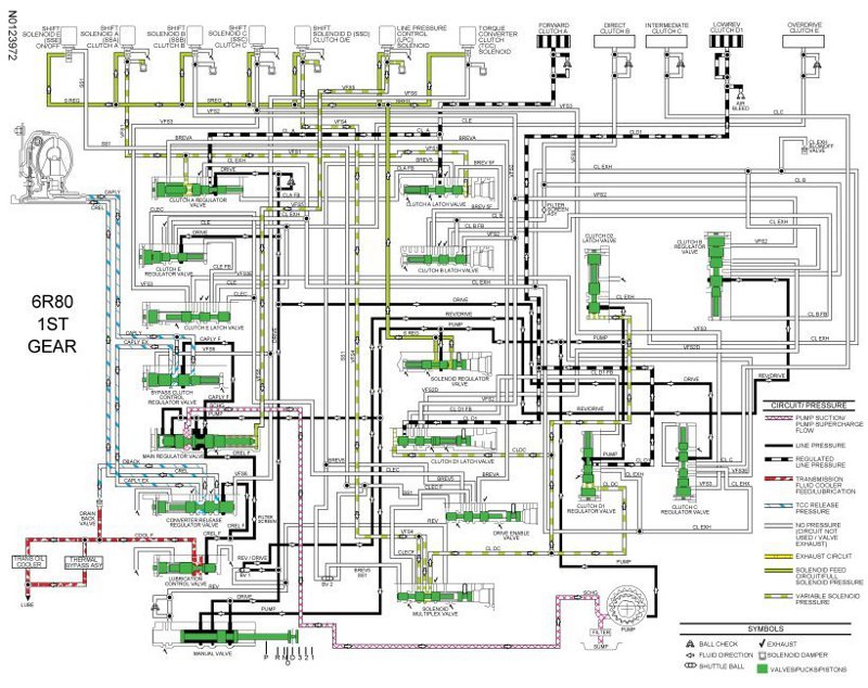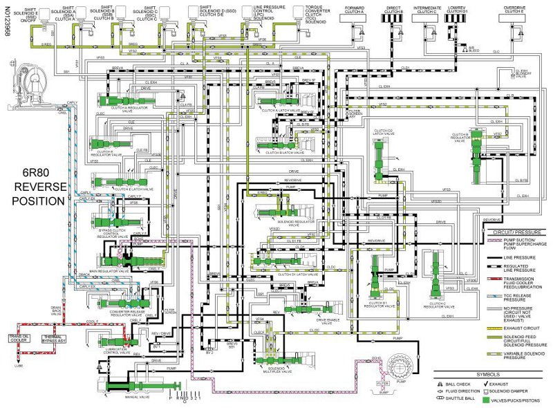 - In reverse, the manual valve directs line pressure to the No. 1 shuttle valve and the solenoid multiplex valve through the REV circuit.