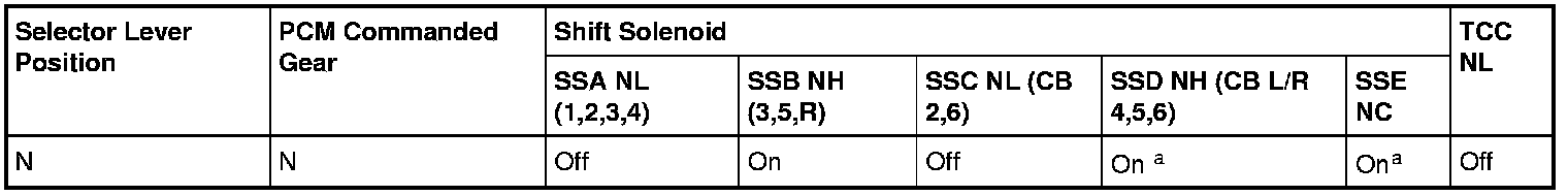 Neutral Position Solenoid Operation Chart