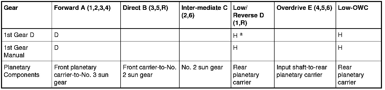 For information about planetary gearsets or the apply clutches, refer to Mechanical Components and Functions Mechanical Components and Functions.