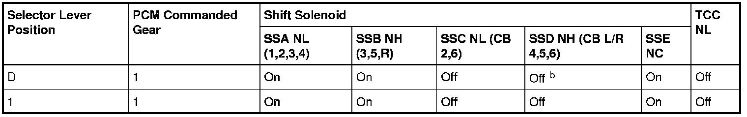1st Gear Solenoid Operation Chart