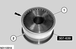19. Install the T11 bearing, on the planetary ring gear and output shaft assembly.