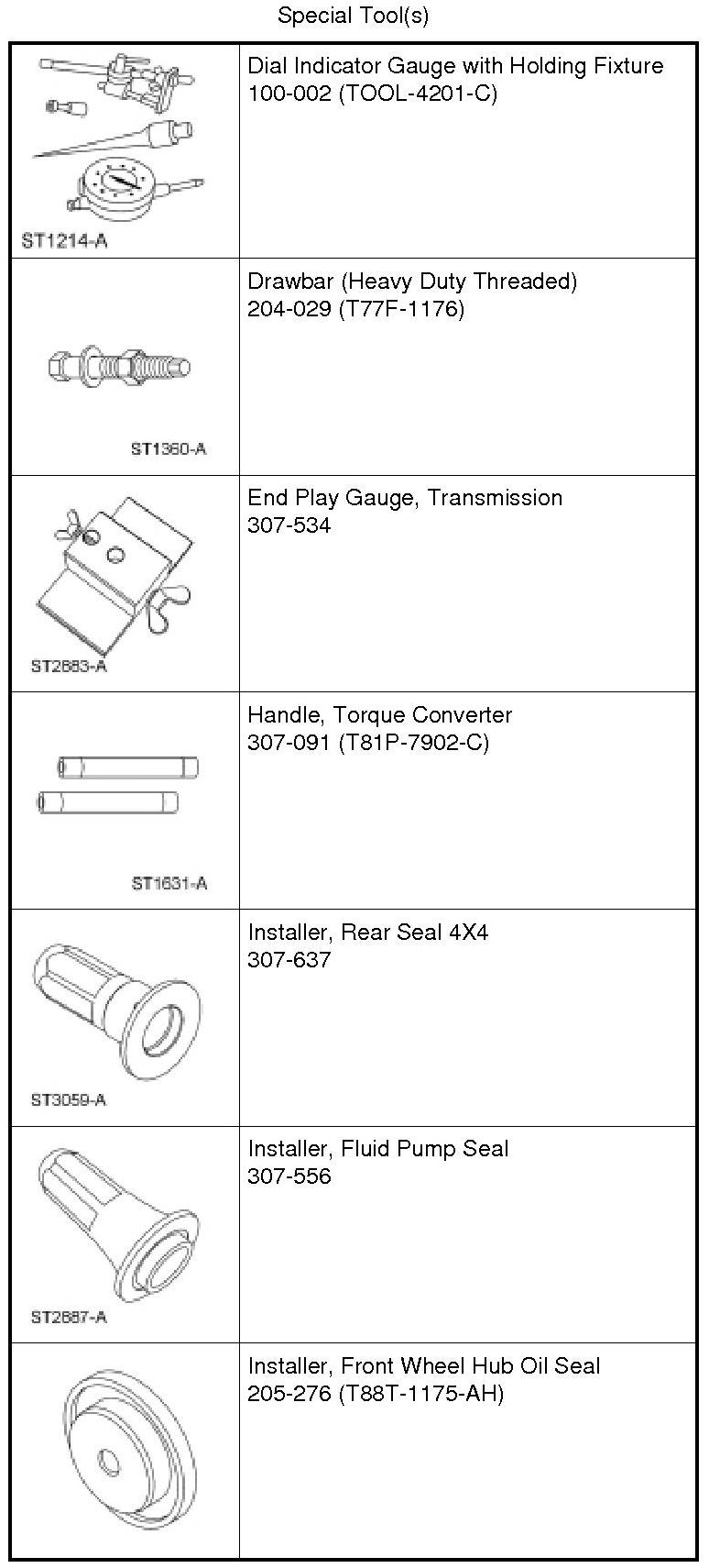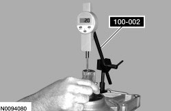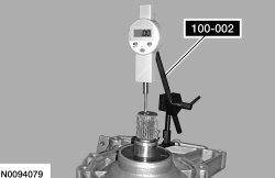 - Lift up on the Transmission End Play Gauge and record the measurement on the Dial Indicator Gauge. The measurement should be between 0.2-0.4 mm (0.008-0.015 in). If the measurement is not within specification, install a new selective front pump shim.