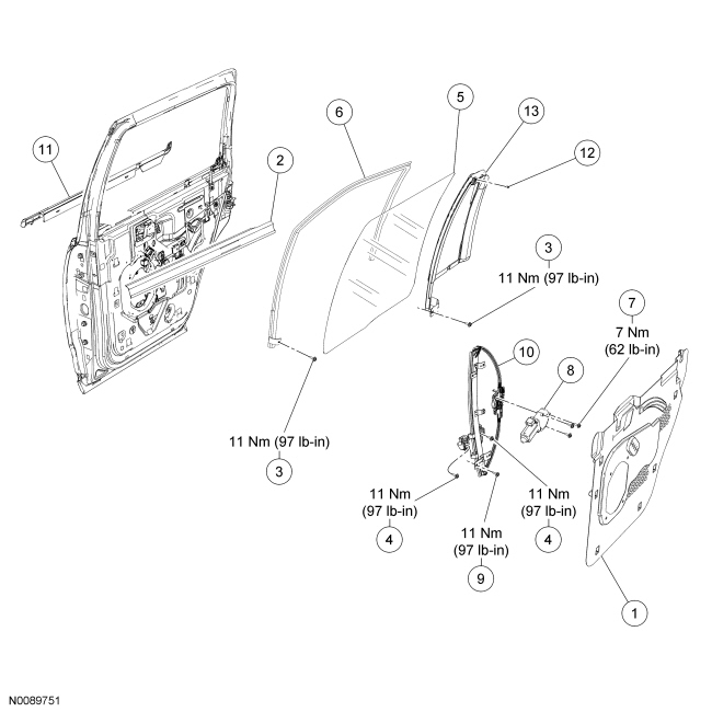 Glass, Frames and Mechanisms - Exploded View, Rear Door