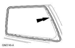1. Apply 8 mm (0.32 in) foam core butyl to the rear quarter window glass frame.