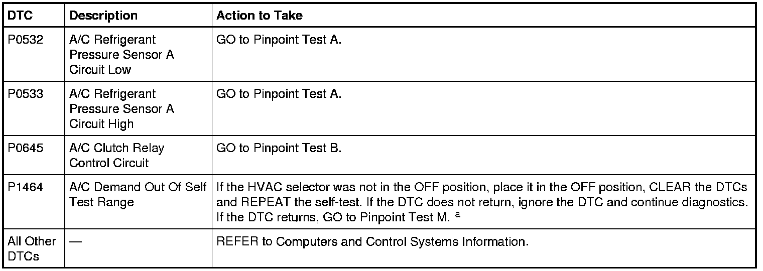 a PCM DTC P1464 will set if the function selector is in PANEL with A/C button pressed, DEFROST or MAX A/C mode when the on-demand self test is being run.