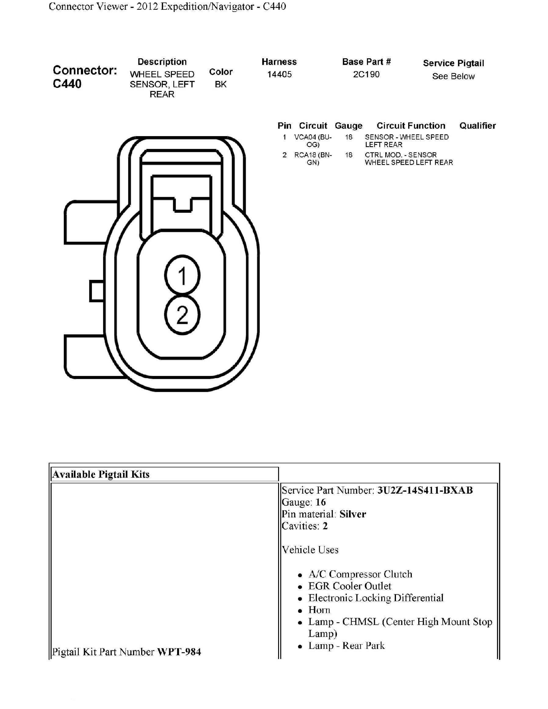 C440 Wheel Speed Sensor, Left Rear