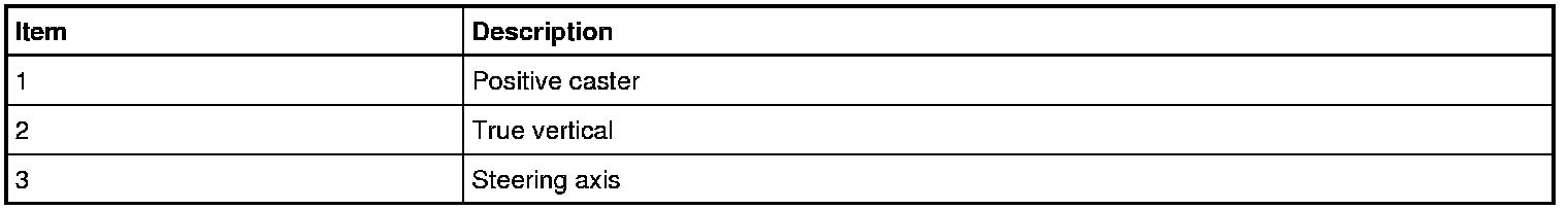 Caster is the deviation from vertical of an imaginary line drawn through the ball joints when viewed from the side. The caster specifications will give the vehicle the best directional stability characteristics when loaded and driven. The caster setting does not affect tire wear.