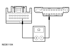 - Measure the resistance between the PAM (Parking Aid Module) C4226-3 (Expedition) or C4014A-3 (Navigator), circuit VDB06 (GY/OG), harness side and the Data Link Connector (DLC) C251-3, circuit VDB06 (GY/OG), harness side.