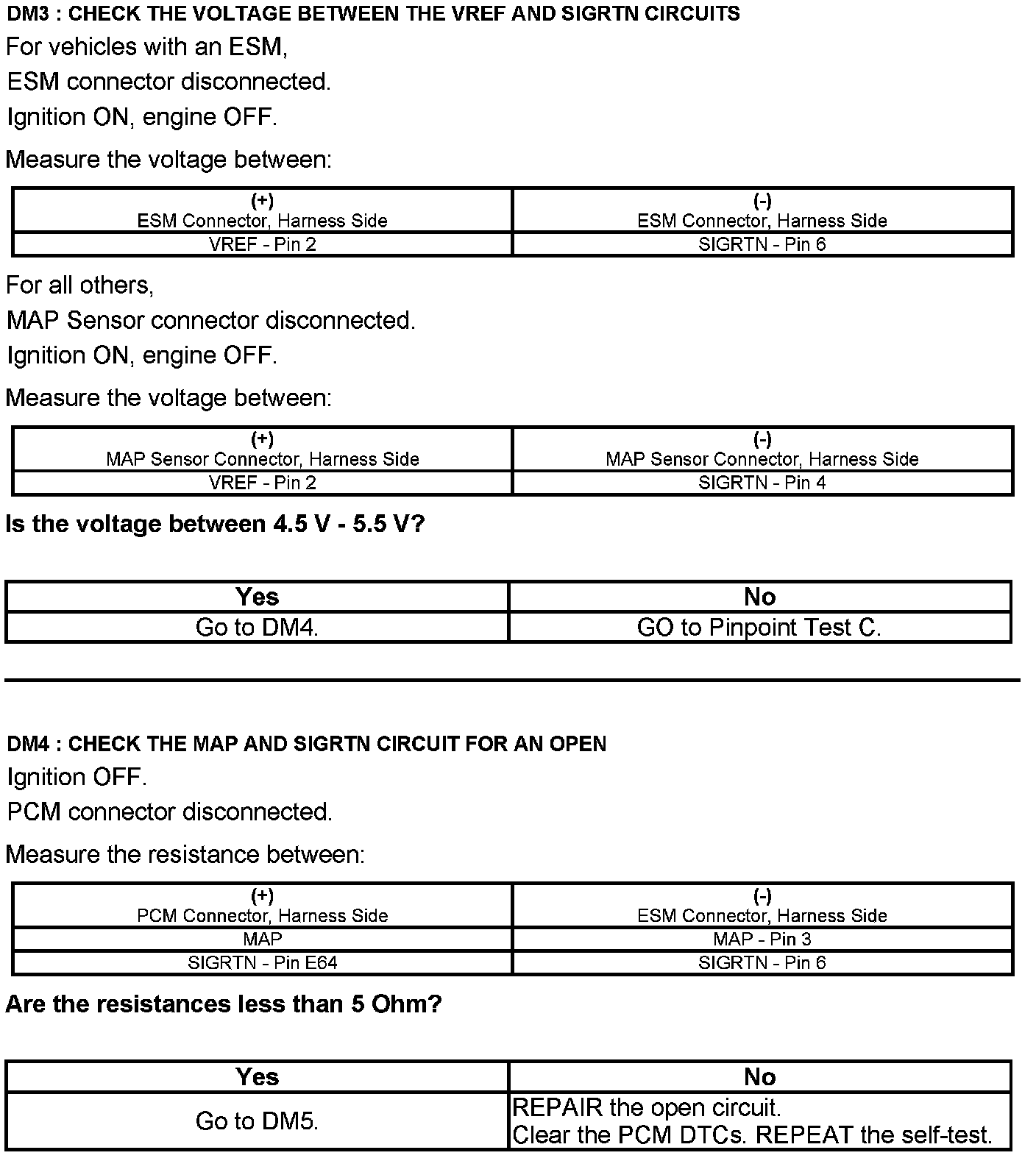 Test DM: Manifold Absolute Pressure (MAP) Sensor