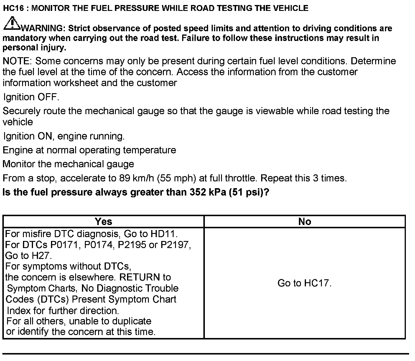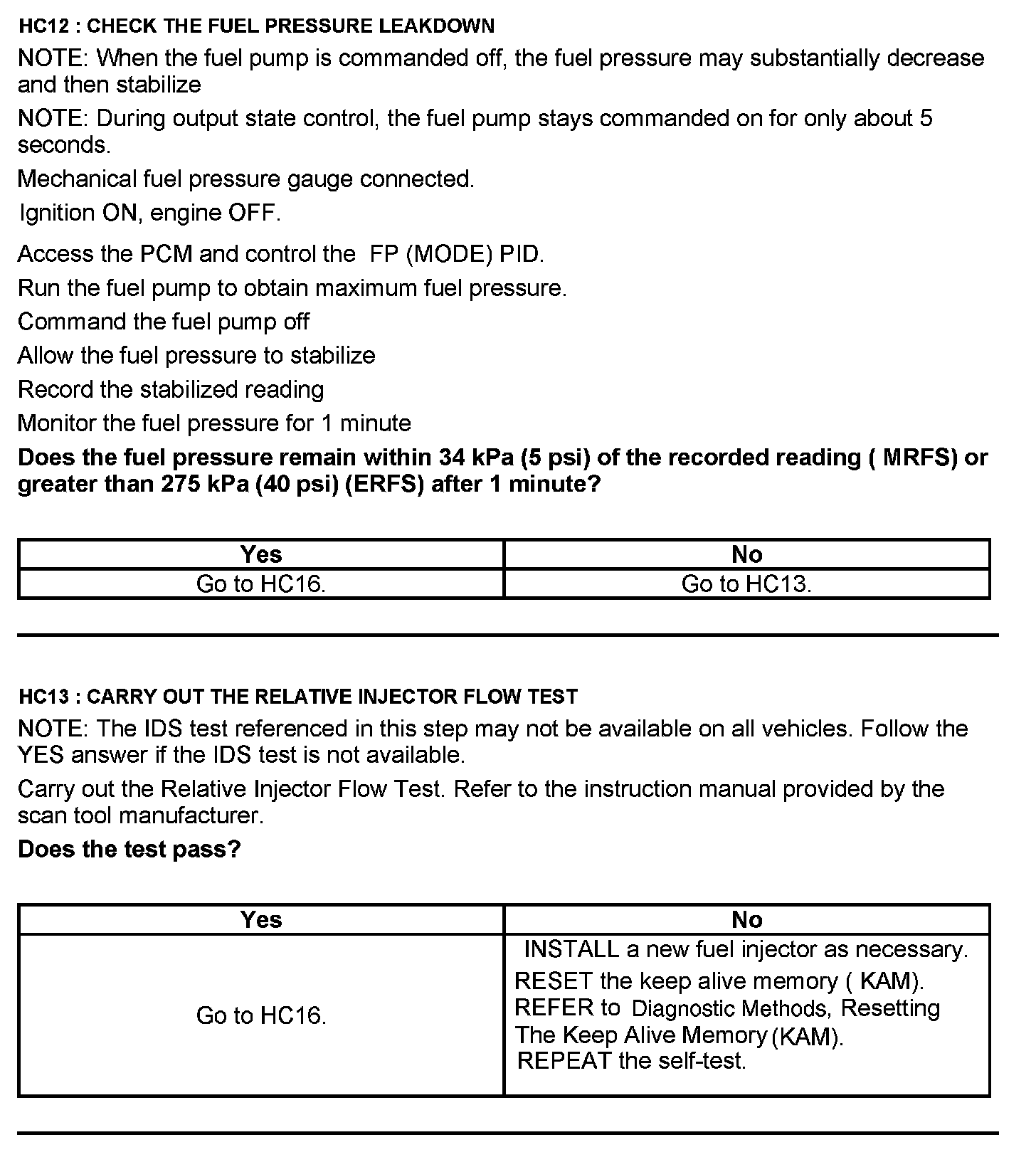 Test HC: Fuel Delivery System