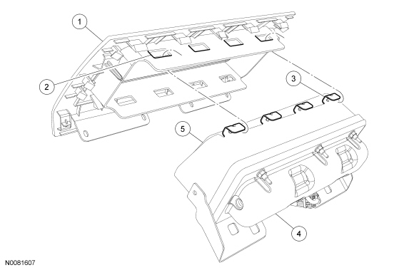 WARNING: Do not manipulate or compromise the passenger air bag module hooks during the removal or installation procedure. Failure to follow this instruction may result in the passenger air bag module deploying incorrectly and increases the risk of serious personal injury or death in a crash.