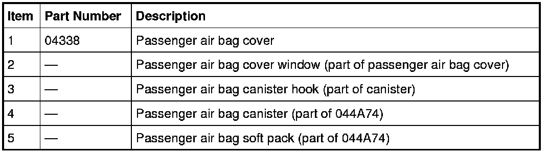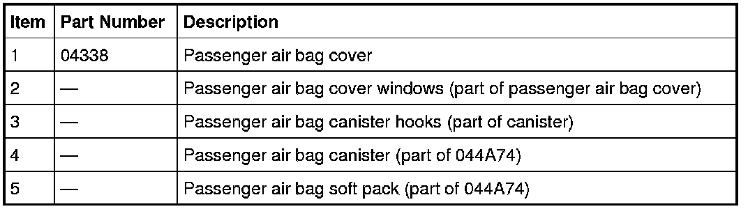 1. Remove the passenger air bag module. For additional information, refer to Passenger Air Bag Module .