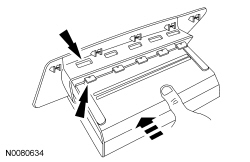 4. Position the canister onto the passenger air bag cover and engage the bottom hooks into the air bag cover windows.