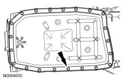 2. Remove the transmission fluid pan and allow the transmission fluid to drain.