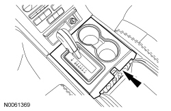 1. Remove the selector lever trim ring, console tray and cup holder insert.