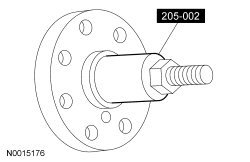 Install the Drive Pinion Flange Holding Fixture and tighten the pinion nut. Refer to the torque specifications in the Specifications portion.