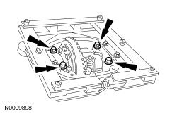 45. NOTE: Hand-tighten the differential bearing cap bolts prior to releasing the Differential Carrier Spreader.
