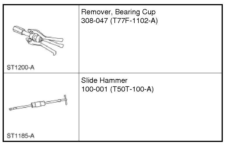 10. Using the Bearing Cup Remover with the Slide Hammer, remove the front output shaft rear bearing.