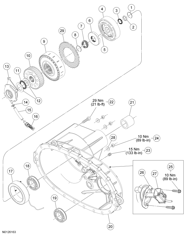 - Tighten to 29 Nm (21 lb-ft).