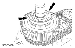 16. NOTICE: When installing the clutch assembly, do not separate the clutch pack assembly. The thrust washer in the lower clutch pack uses tabs to hold it in place. If the thrust washer is not in place, a transfer case clearance problem will occur.