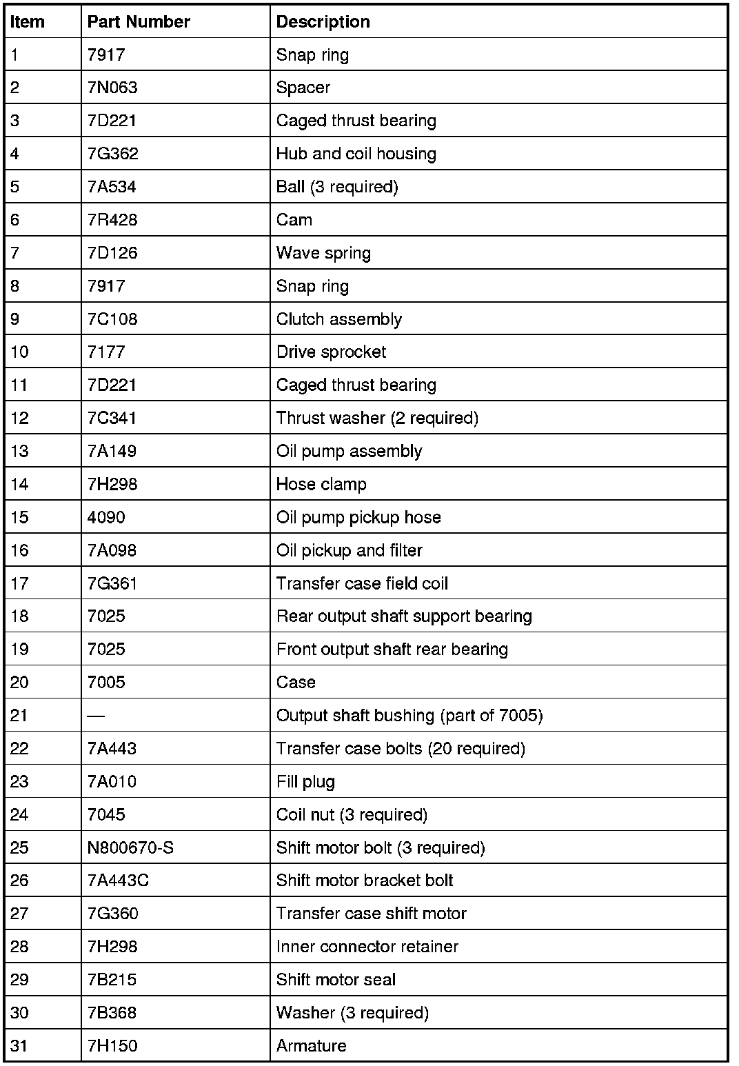 1. Lubricate all internal components with the recommended transfer case lubricant during reassembly.