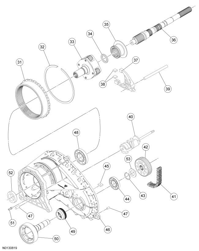 29. NOTE: Only apply enough silicone sealant to seal the transfer case halves together.