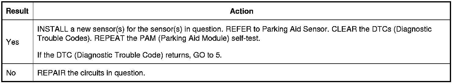 1. Check the PAM (Parking Aid Module) DTCs (Diagnostic Trouble Codes) from the self-test.