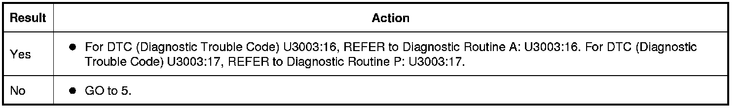 Is DTC (Diagnostic Trouble Code) U3003:16 or U3003:17 recorded?